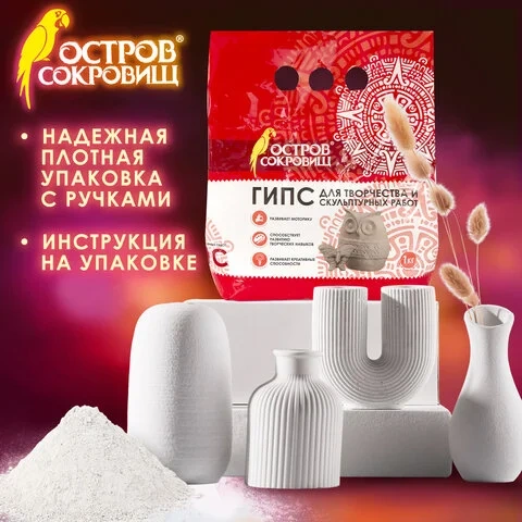 Гипс скульптурный ОСТРОВ СОКРОВИЩ, 1000 г, прочность Г-16, пакет, 661546