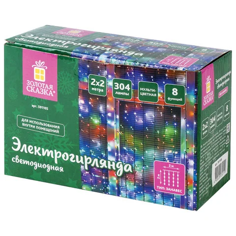 Гирлянда светодиодная внутренняя Золотая Сказка Занавес, 304 лампы, 2х2м, многоцветная