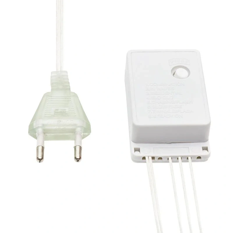 Гирлянда Светодиодный Дождь, предназначенная для размещения в помещении, представляет собой гибкий горизонтальный шнур-шину , к которому через определенные промежутки крепятся вертикальные нити (15 шт.) равной длины со светодиодами. Данная гирлянда предназначена для домашнего использования и идеально подойдет для украшения стандартного окна в квартире или офисе, а так же удачно подсветит пространство за плотными еле прозрачными шторами или тюлем. Сегодня в гирляндах источником света служат светодиоды, которые пришли на смену применявшимся ранее лампам накаливания. С полупроводниковыми источниками гирлянда стала более надежной, потребляет меньше электроэнергии, обрела более насыщенное сияние. Гирлянда выполнена в виде основного шнура, с которого свисают нити с расположенными на них 300 светодиодами. Светодиоды более надежны, экономны и не нагреваются. Степень защиты — IP 20. Контроллер с 8 режимами. Режимы свечения: 1. Свечение с динамикой. Технические характеристики: — Температурный режим: от 20 до 40 °C; — Длина гирлянды: 2,5 м; — Длина дополнительных линий: 2 м; — Длина шнура: 3 м; — Питание: от сети 220 В. Товар имеет степень защиты IP20 — защита корпуса от проникновения частиц диаметром 12.5 мм и более, без защиты от воды или брызг.