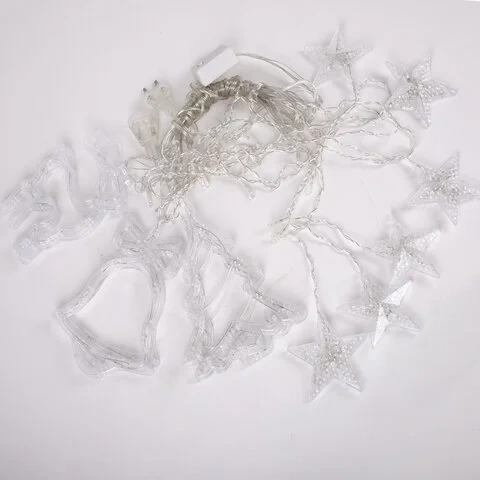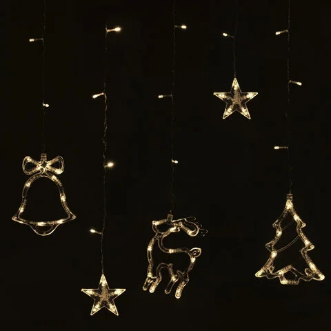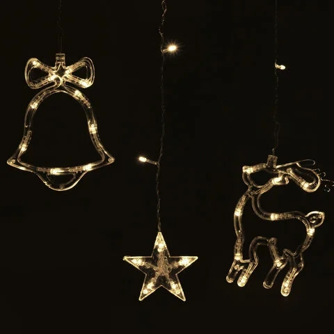 Рабочая часть гирлянды состоит из пяти частей и включает 120 светодиодов: первая - включает в себя 40 светодиодных ламп, которые не имеют декоративных колпачков и расположены вдоль нитей, свисающих вниз. Вторая часть представляет собой 6 светодиодных фигур в форме пятиконечной звезды диаметром 9 см, выполненных из пластика, с 5-ю светодиодами внутри. Третья часть - это 2 светодиодные фигуры в виде оленей размером 11,5х16,8 см, выполненные из пластика с 10-ю светодиодами внутри. Четвертая часть - это 2 светодиодные фигуры в виде колокольчика размером 13,5х17,5 см, выполненные из пластика с 10-ю светодиодами внутри. Пятая часть - это 2 светодиодные фигуры в виде ёлочки размером 14х17,5 см, выполненные из пластика с 10-ю светодиодами внутри.