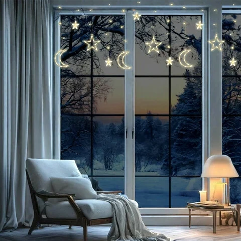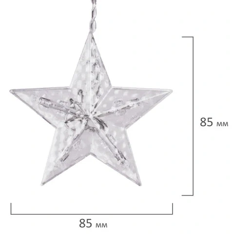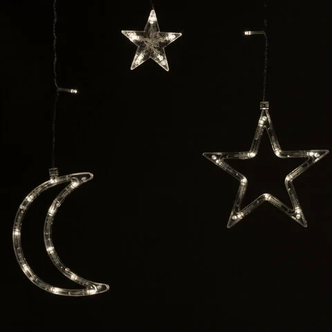 Рабочая часть гирлянды состоит из четырех частей и включает 120 светодиодов: первая - включает в себя 40 светодиодных ламп, которые не имеют декоративных колпачков и расположены вдоль нитей, свисающих вниз. Вторая часть представляет собой 10 светодиодных фигур в форме большой пятиконечной звезды диаметром 16,8 см, выполненных из пластика, с 10-ю светодиодами внутри. Третья часть - это 6 светодиодных фигур в виде маленькой пятиконечной звезды диаметром 9 см, выполненных из пластика с 5-ю светодиодами внутри. Четвертая часть - это 3 светодиодные фигуры в виде луны размером 13,5х18 см.