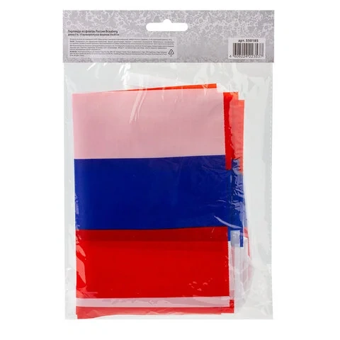 Гирлянда из флагов России, длина 5 м, 10 прямоугольных флажков 20х30 см, BRAUBERG, 550185, RU25