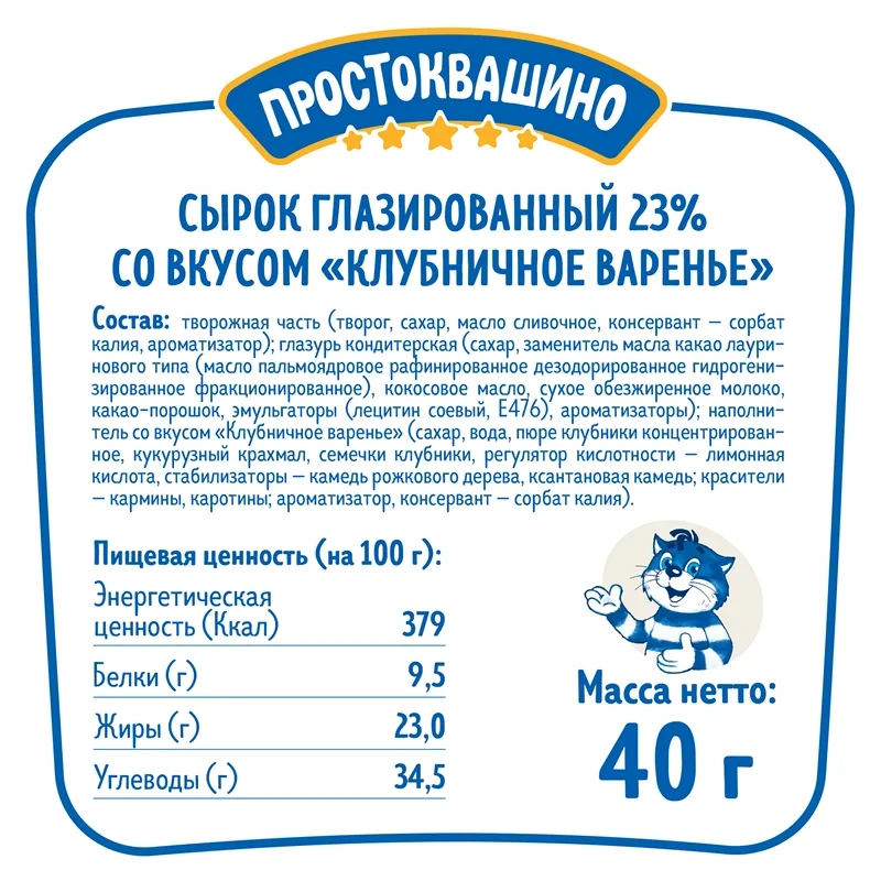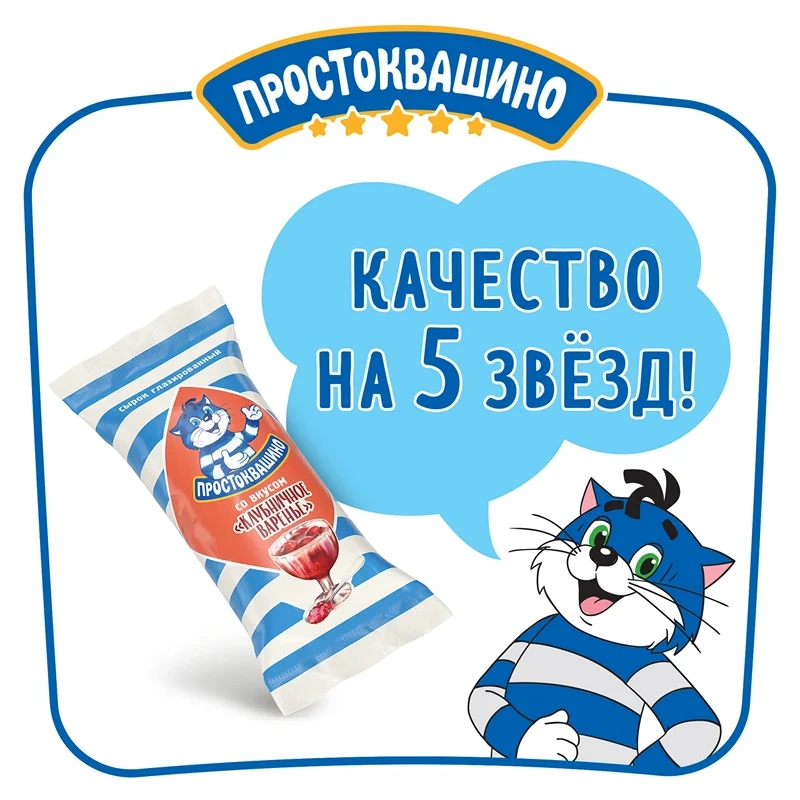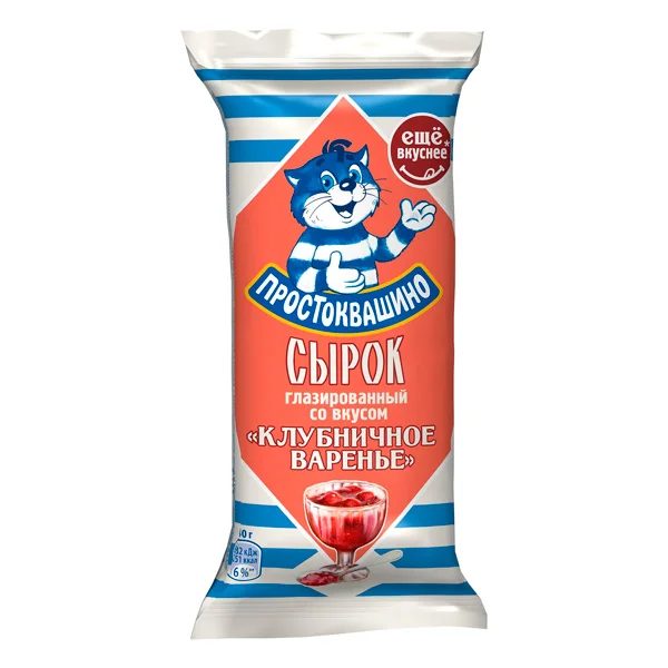 Встречайте новые, еще более вкусные сырки от Простоквашино! Более плотная творожная масса отлично сочетается с новой глазурью и наполнителем 'Клубничное варенье'. Побалуйте себя новым глазированным сырком Простоквашино со вкусом Клубничное варенье!