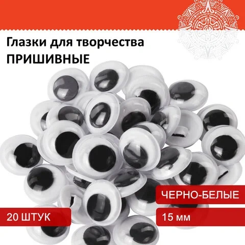 Глазки для творчества пришивные, вращающиеся, черно-белые, 15 мм, 20 шт., ОСТРОВ СОКРОВИЩ, 661383