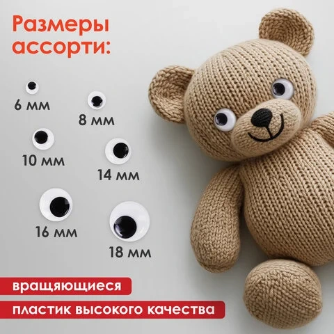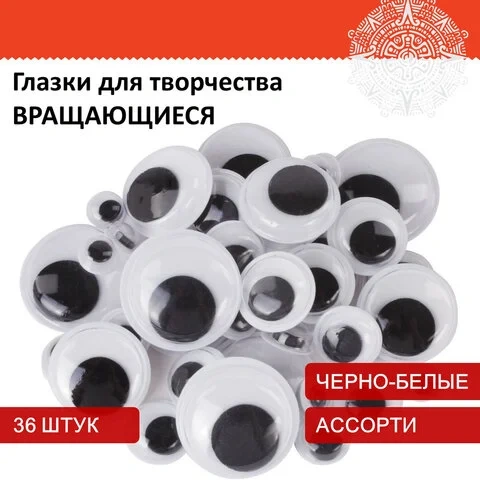 Глазки для творчества, вращающиеся, черно-белые, ассорти, 36 шт., ОСТРОВ СОКРОВИЩ, 661332