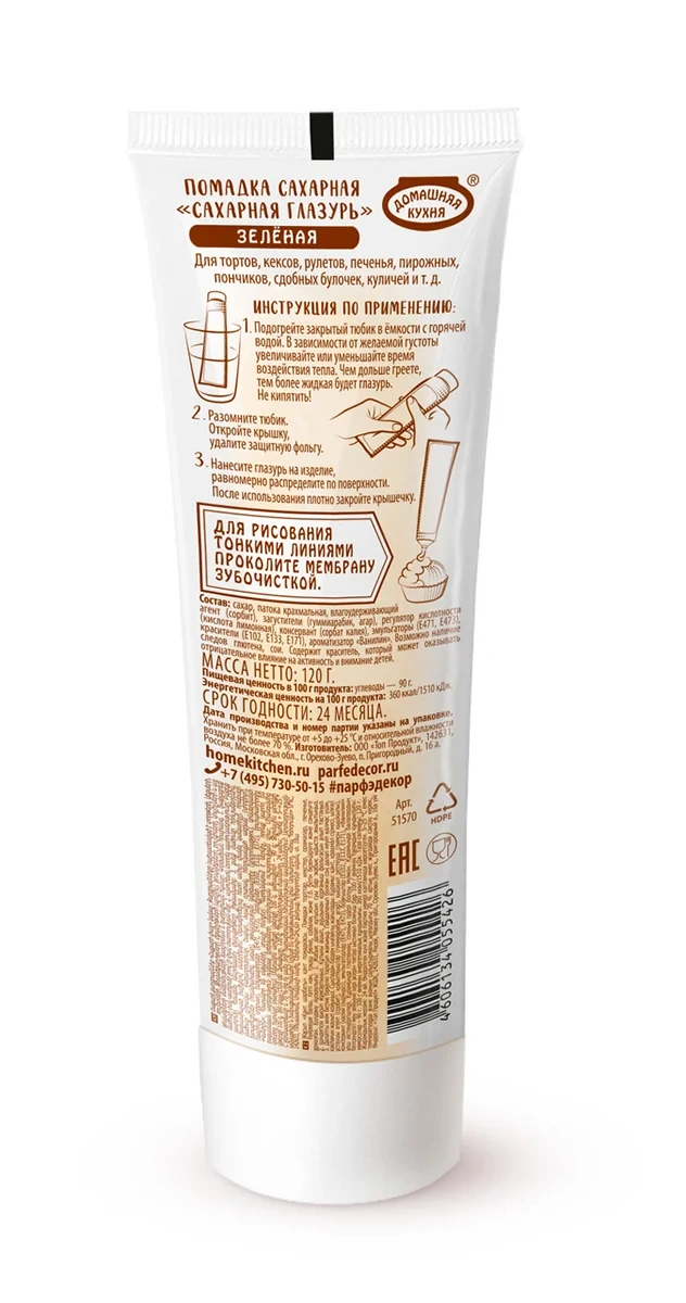 Глазурь Парфэ Сахарная зеленая сразу из тюбика, 120г