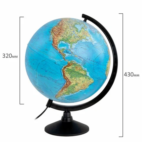 Глобус позволит ознакомиться с физической и политической картой мира. Подходит для использования в детских садах и школах. Поможет узнать об организационно-правовом (политическом) укладе территорий и рельефе земной поверхности.