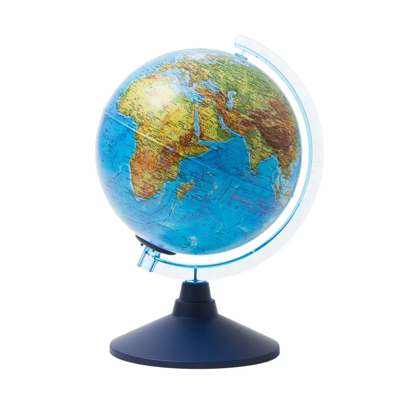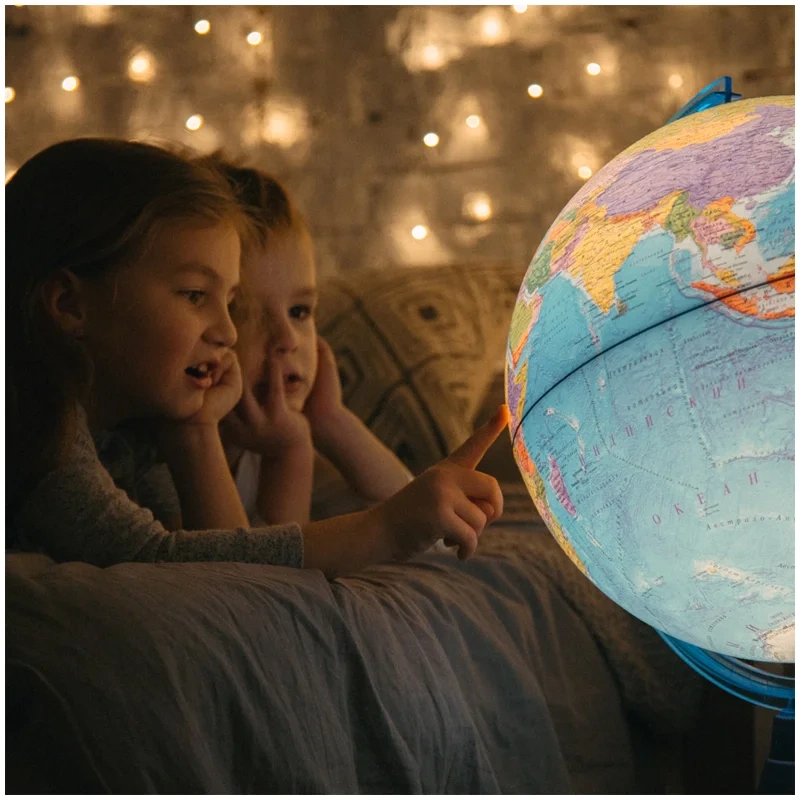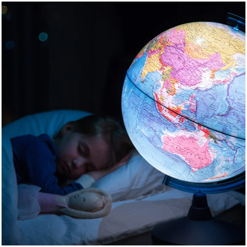 Глобус включает в себя две карты: с выключенной подсветкой вы видите физическую карту мира, при включении подсветки – политическую карту мира. Это делает глобус практичным и долговечным в использовании – пригодится школьнику для изучения окружающего мира, географии, истории и экономики.
