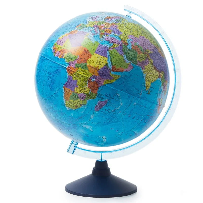 Глобус с политической картой станет верным помощником в изучении географии, истории, экономики. Яркое лоскутное полотно политической карты даёт наглядное представление о современном политическом устройстве мира.