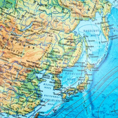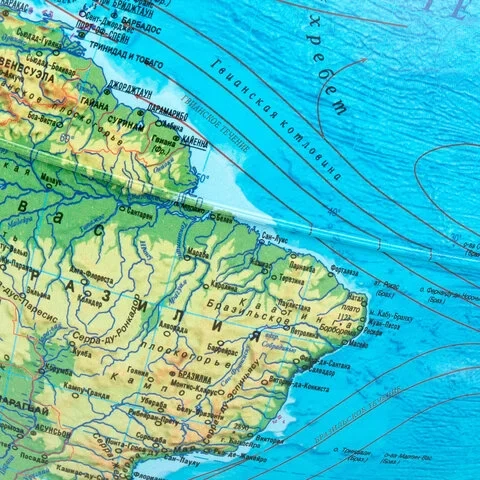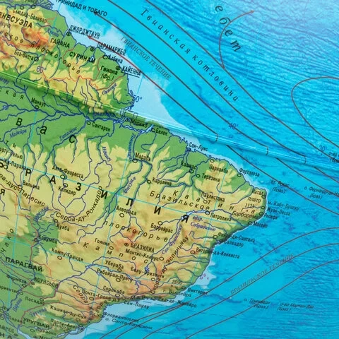 На карту глобуса нанесены страны, границы, города, континенты, моря, океаны, глубины и другая полезн...