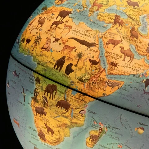 Глобус зоогеографический. Подходит для использования в детских садах и школах. Предназначен для изуч...