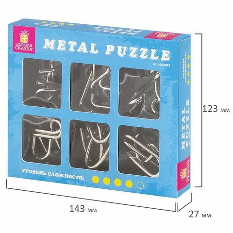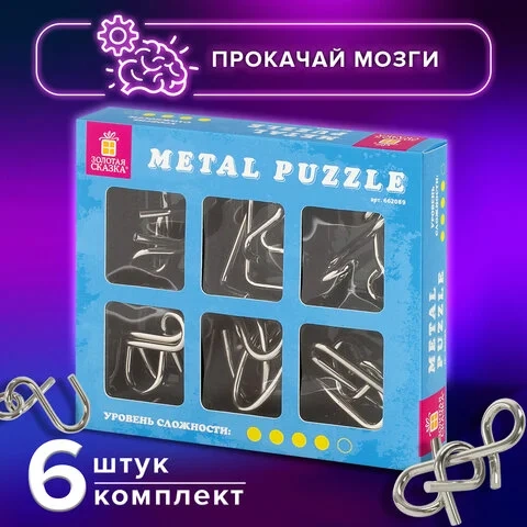 Головоломки металлические ЗОЛОТАЯ СКАЗКА (уровень сложности 'ЭКСПЕРТ'), набор 6 штук, 662089