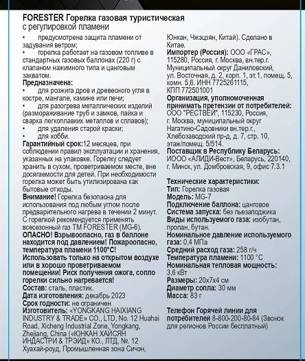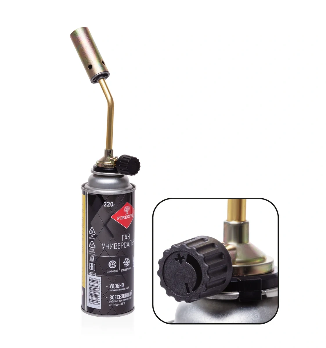 Горелка газовая туристическая c регулировкой пламени. Предусмотрена защита пламени от задувания ветром. Горелка работает на газовом топливе в стандартных газовых баллонах (220 г) с клапаном нажимного типа и цанговым захватом. Предназначена: -для розжига дров и древесного угля в костре, мангале, камине или печи; - для разогрева металлических изделий (размораживание труб и замков, пайка и сварка легкоплавких металлов и сплавов); - для удаления старой краски; - для хобби. Модель: MG-7. Подключение баллона: цанговое. Система запуска: без пьезаподжига. Виды используемого газа: изобутан, пропан, бутан. Номинальное давление используемого газа: 0,4 Мпа. Средний расход газа: 258г/ч. Температура пламени: 1100С. Номинальная тепловая мощность: 3,6кВт. Держатели горелки регулируются в 2-х положениях, что позволяет разместить посуду разного диаметра. Устройство оснащено автономным пьезоподжигом и регулятором мощности горения. Компактная горелка занимает минимум места и легко помещается в рюкзак или вещмешок. Она послужит отличным подарком для любителей охоты, рыбалки, пикников, кемпинга, туризма и походов.