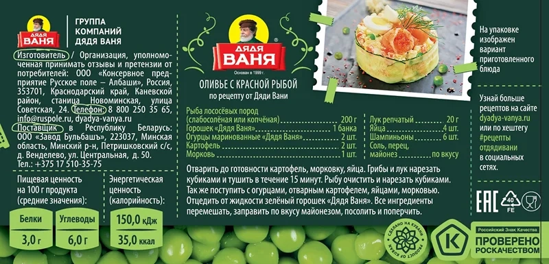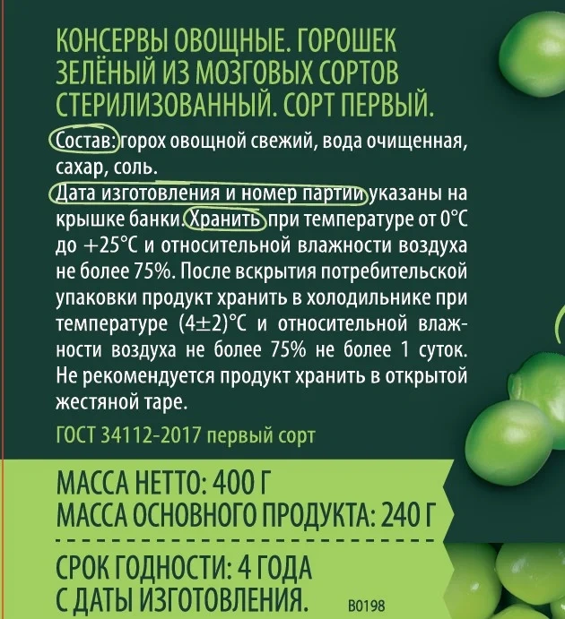 Горошек зеленый Дядя Ваня из мозговых сортов, 400г