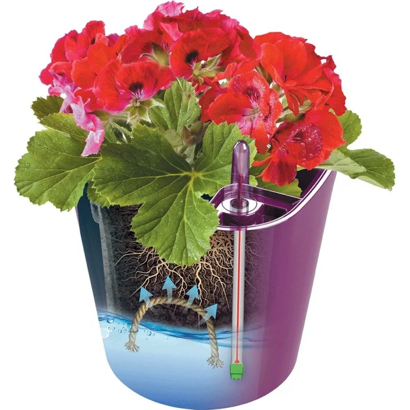Горшок предназначен для удобного ухода за растениями. Система автополива позволяет поддерживать оптимальный уровень влаги, что сокращает необходимость в частом поливе. Горшок может использоваться раз в 2-3 недели для полива, что предотвращает перелив растения.