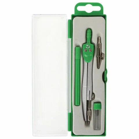 В состав готовальни входят 2 предмета:- циркуль;- пенал с запасным грифелем.Циркуль длиной 140 мм им...