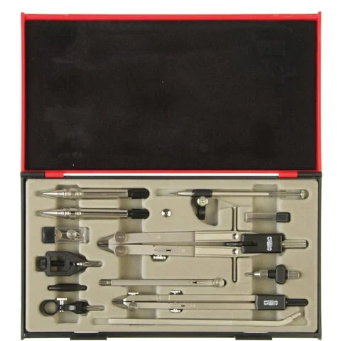 Профессиональная готовальня в пластиковом красном футляре с бархатной подложкой. Наполнение 13 предм...