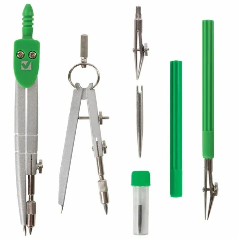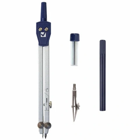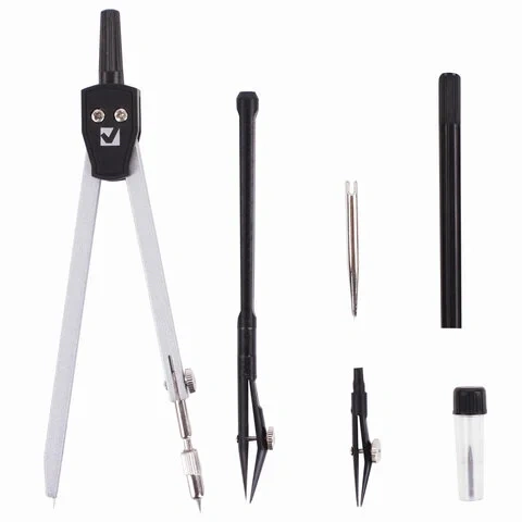 В состав готовальни входят 4 предмета:- циркуль;- рейсфедерная вставка;- держатель для рейсфедерной ...