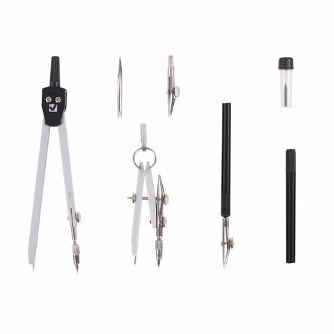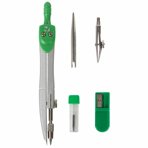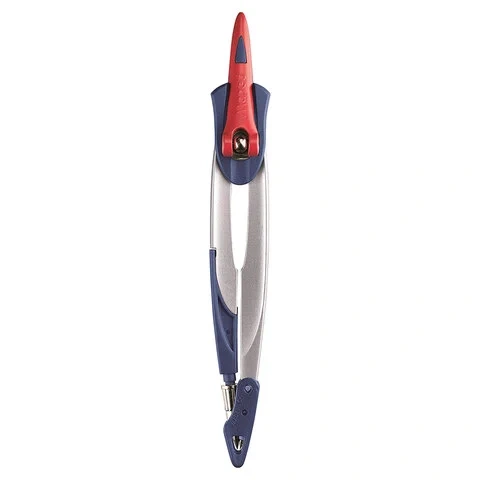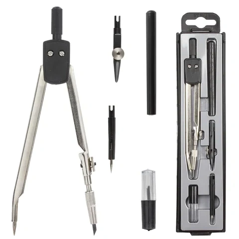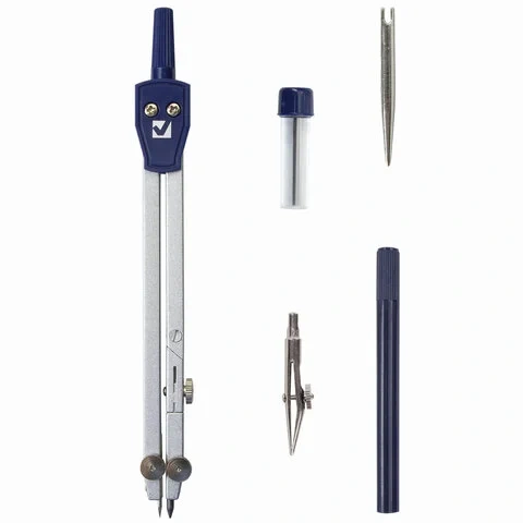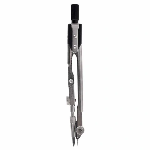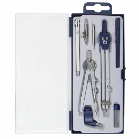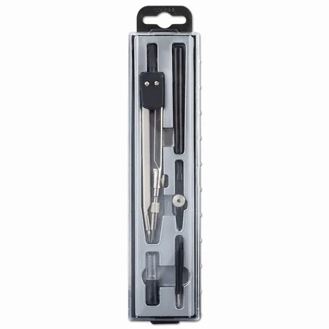 Металлический циркуль из трех предметов поставляется в ударопрочном пенале с подвесом. Произведен с ...