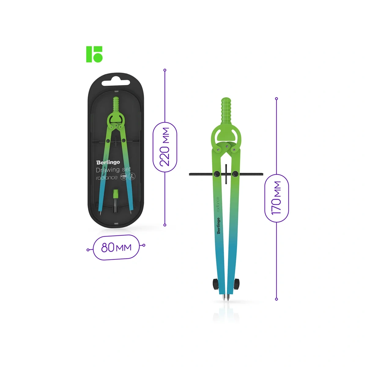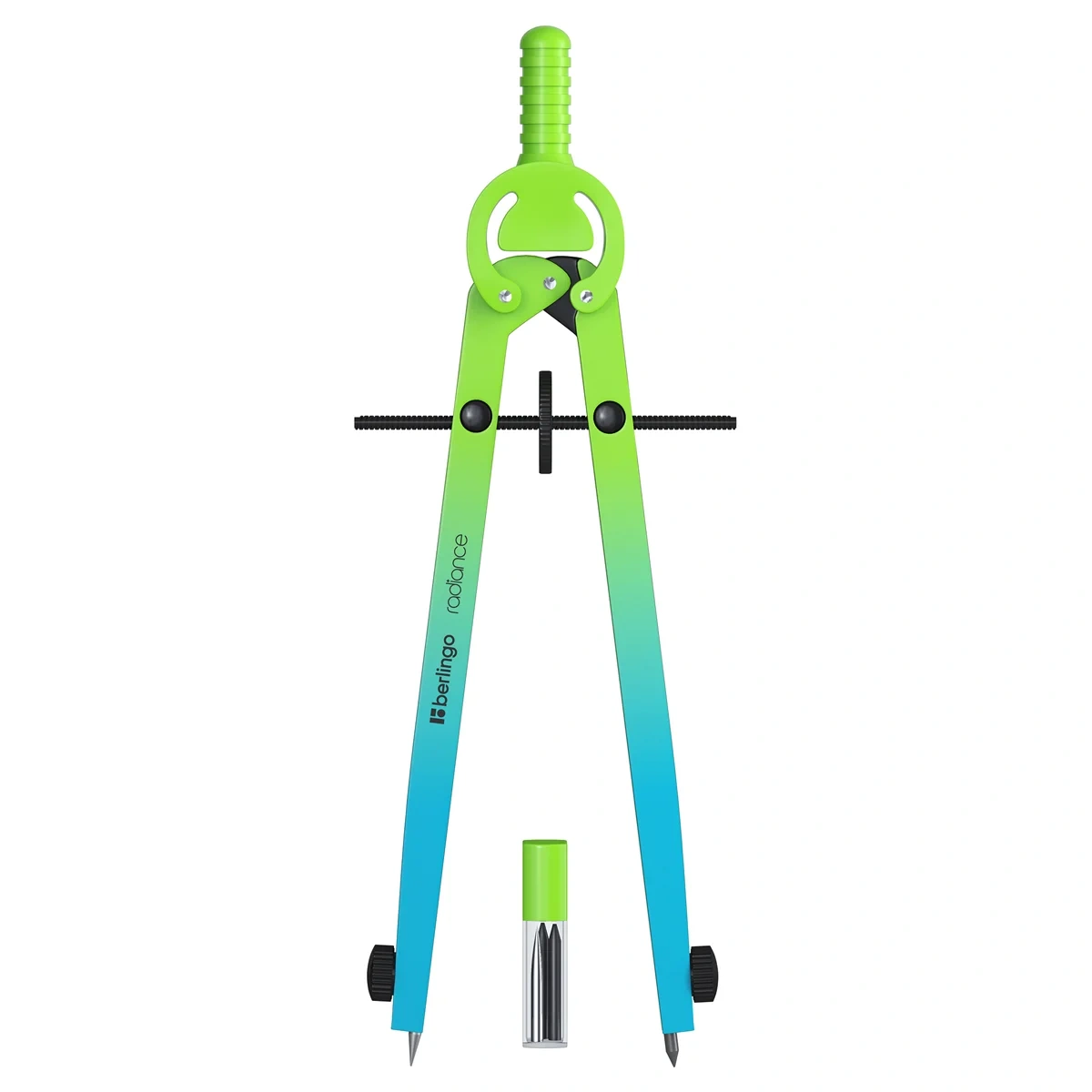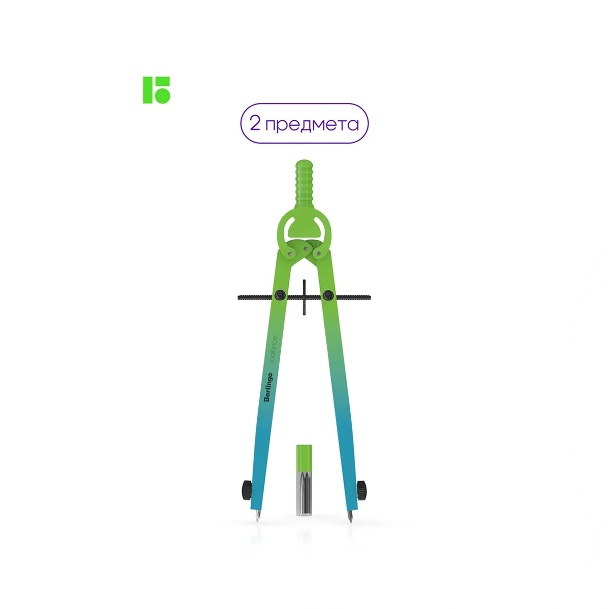 Готовальня Berlingo 'Radiance', 2 предмета, циркуль 170мм, голубой/зеленый градиент, пластиковый фут