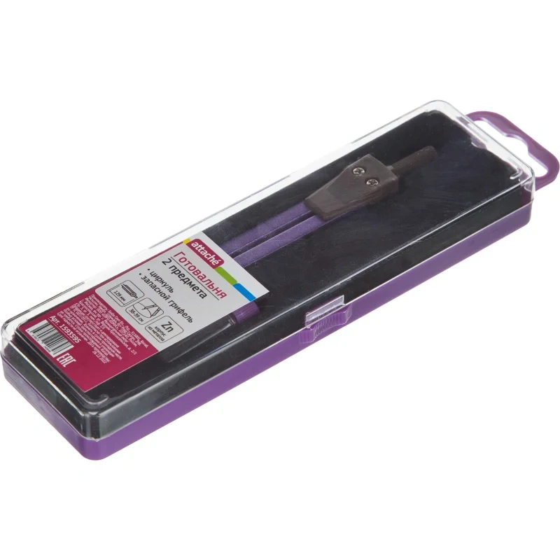 Готовальня Attache BF-A5 2пр/наб,циркуль 129 мм,фиолет,пласт.пенал,европодв
