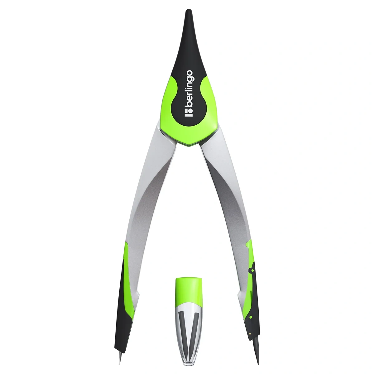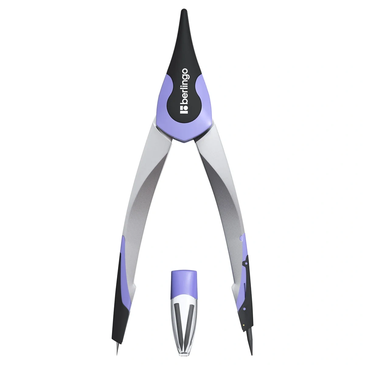 Эргономичная головка/держатель циркуля. В составе набора: циркуль, запасной грифель. В пластиковом пенале.