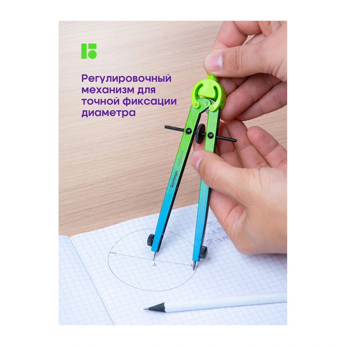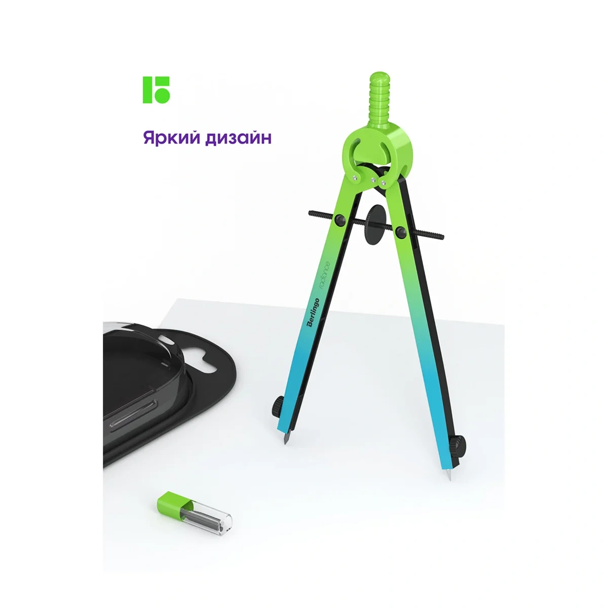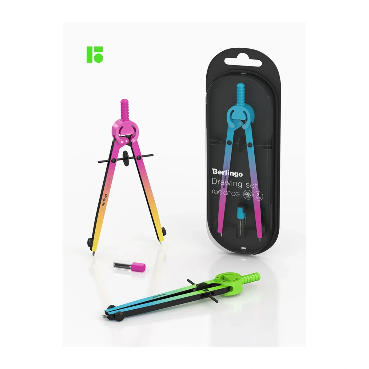 Готовальня Berlingo 'Radiance', 2 предмета, циркуль 170мм, голубой/зеленый градиент, пластиковый фут