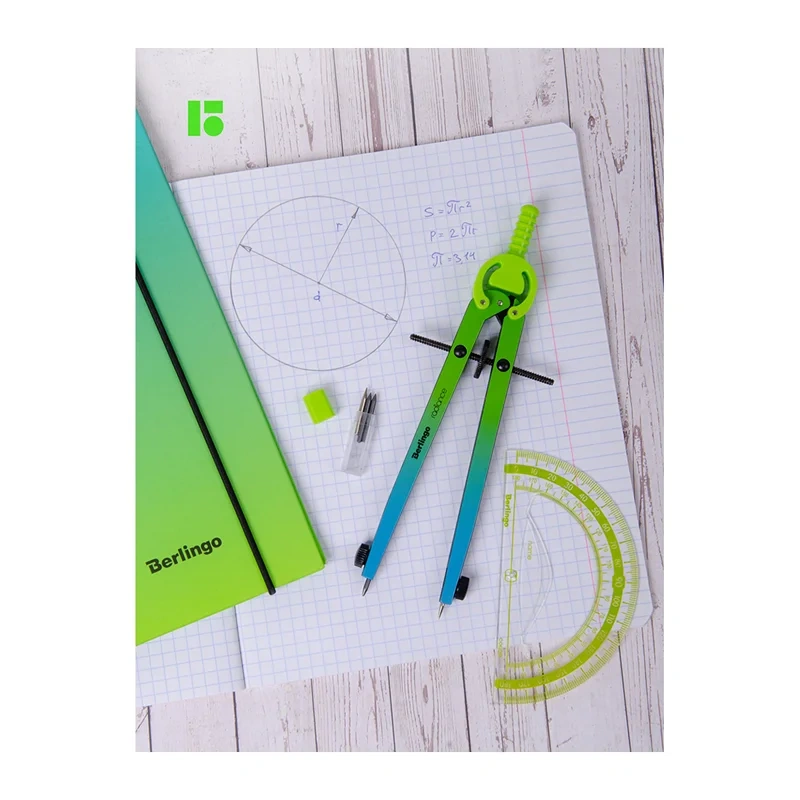 | Комплектация | циркуль с эргономичной головкой, пенал с запасным грифелем |