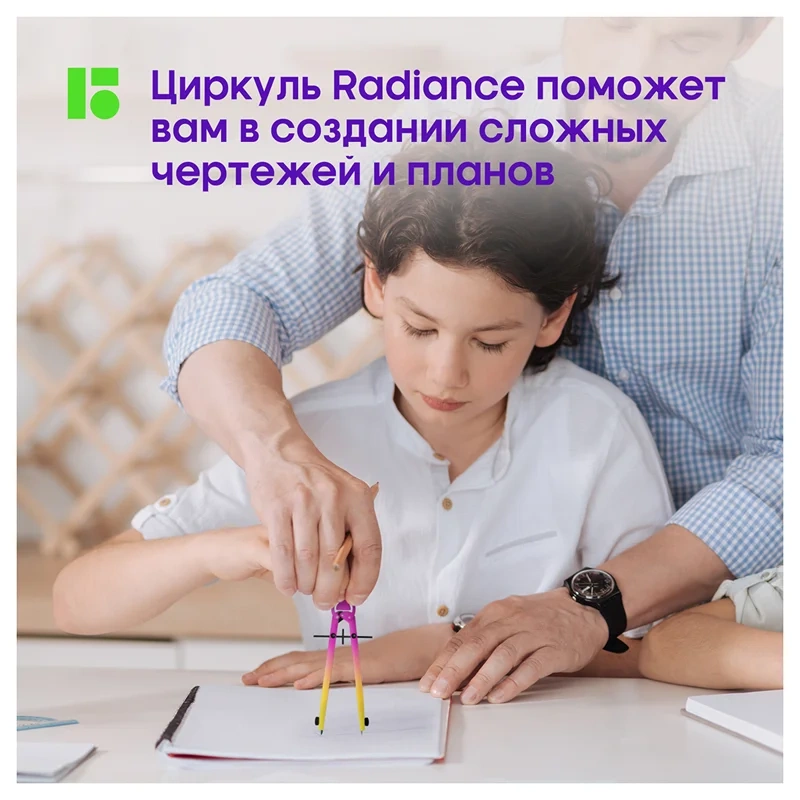 Циркули серии 'Radiance' обладают регулировочным механизмом, который позволяет чертить окружности диаметром до O 390 мм.