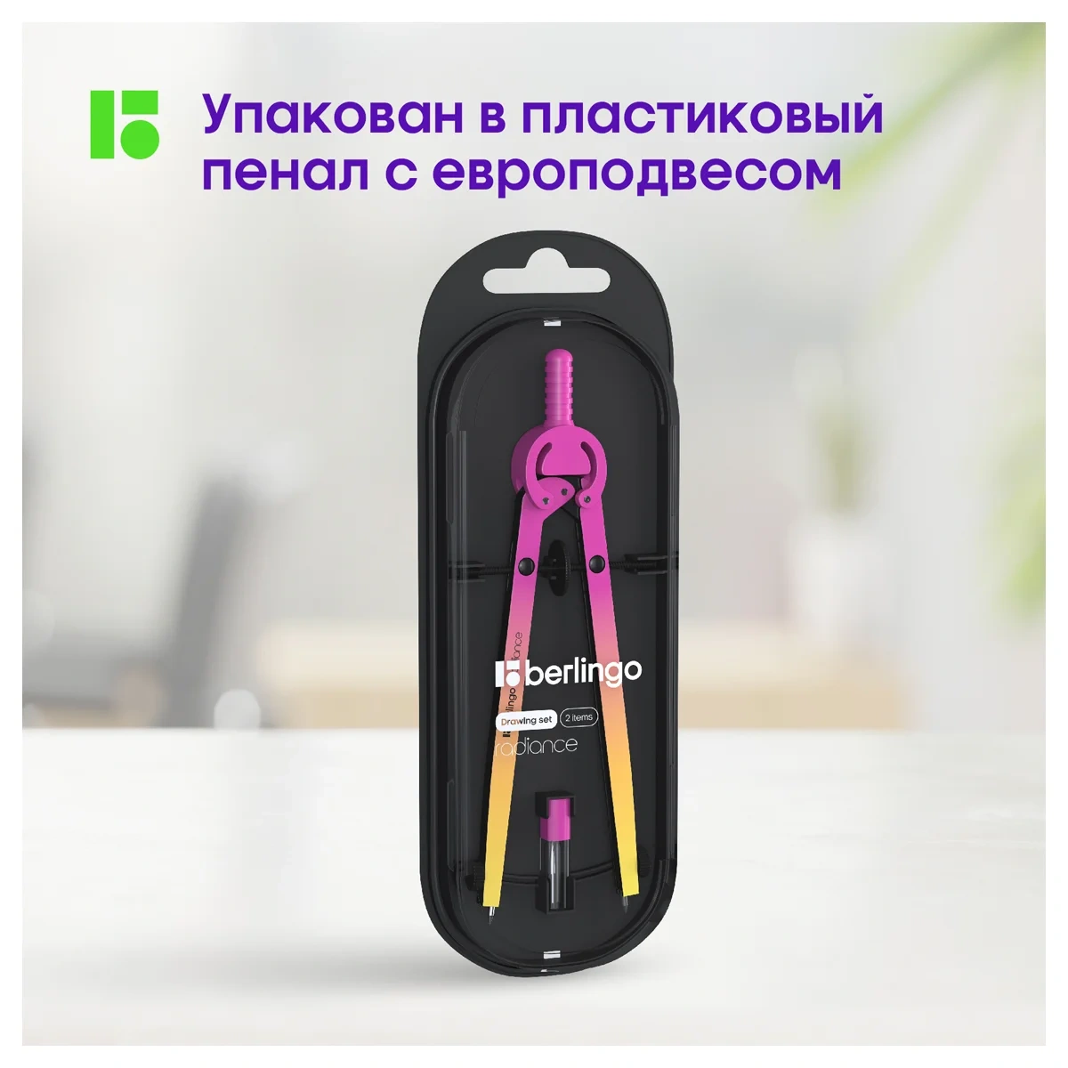Готовальня Berlingo 'Radiance', 2 предмета, циркуль 170мм, желтый/розовый градиент, пластиковый футл