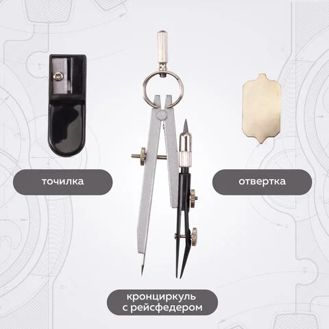 | Комплектация | игольная вставка, кронциркуль, отвёртка, пенал с запасным грифелем, рейсфедерная вставка и держатель |