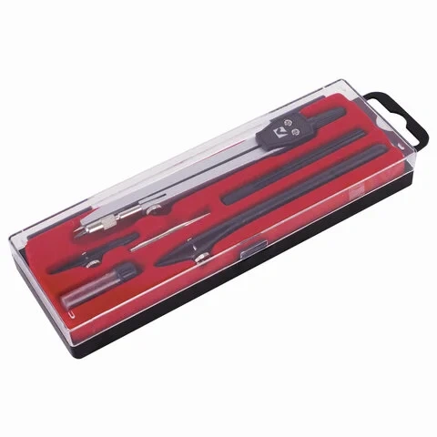 | Комплектация | держатель, игольная вставка, пенал с запасным грифелем, рейсфедер, рейсфедерная вставка и держатель, |