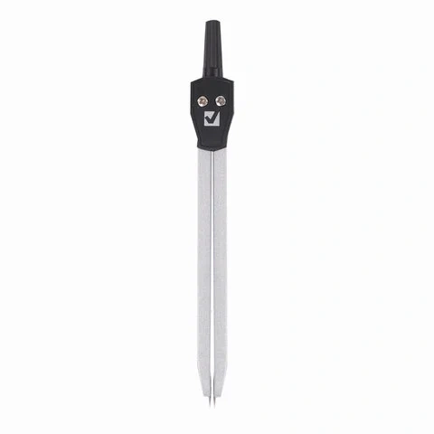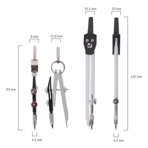 Циркуль длиной 135 мм имеет одну сгибаемую штангу. Изготовлен из металла, дополнительный цвет элементов - черный.