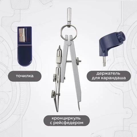| Комплектация | держатель, кронциркуль, пенал с запасным грифелем, рейсфедерная вставка и держатель, точилка, циркул |