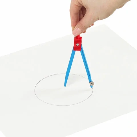 Циркуль длиной 110 мм имеет несгибаемые штанги и подстраиваемую иглу. Изготовлен из металла. Цвет - синий, дополнительный цвет элементов - красный.