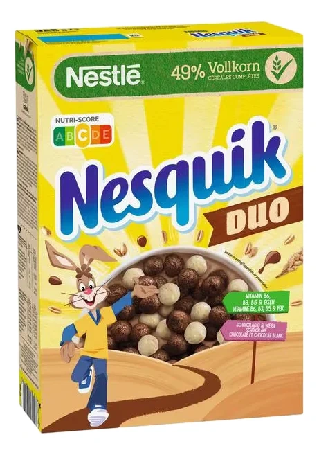 Это смесь шариков из темного и белого шоколада. Содержит 49% цельного зерна, а также множество витаминов и минералов. Завтрак Несквик не требует долгих приготовлений, достаточно залить его молоком или любимым напитком. Шарики содержат большое количество клетчатки, которая оказывает положительное влияние на работу пищеварительной системы. Для полноценного завтрака необходимо добавить к шоколадным шарикам немного молока. Также его можно употреблять в сухом виде, в качестве перекуса.