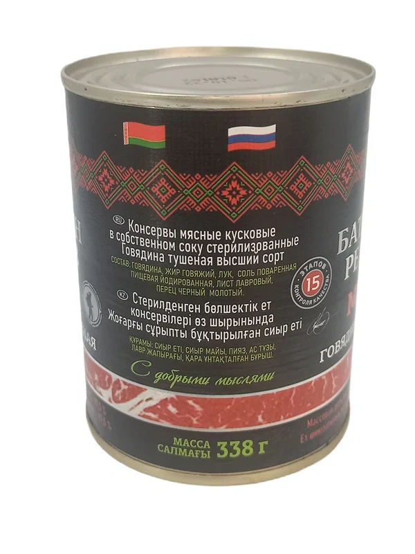 Тушеная говядина марки Батькин резерв незаменима на длительном отдыхе на природе. Ведь она поможет быстро утолить голод и восполнить запас сил. Натуральное мясо высшего сорта обладает превосходным вкусом. При этом тушенку можно употреблять прямо из банки или использовать в качестве основы для более сложных блюд не только в полевых условиях, но и дома на вашей кухне.