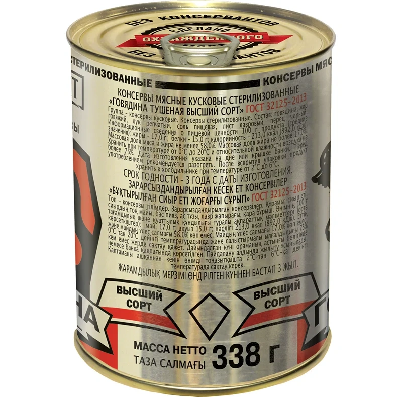 Говядина тушеная Главпродукт Люкс высший сорт, 338г изготовлена из натурального продукта без добавления ненужных компонентов (жилы, хрящи), которые добавляют лишний вес и ухудшают вкусовые качества. Открыв банку, можно ощутить приятный аромат, а попробовав – нежный вкус мяса, которое распадается на волокна.