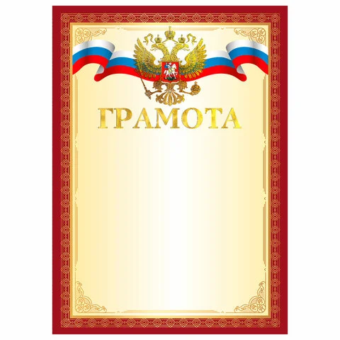 Грамота А4, мелованный картон, конгрев, тиснение фольгой, красная рамка, BRAUBERG, 117530