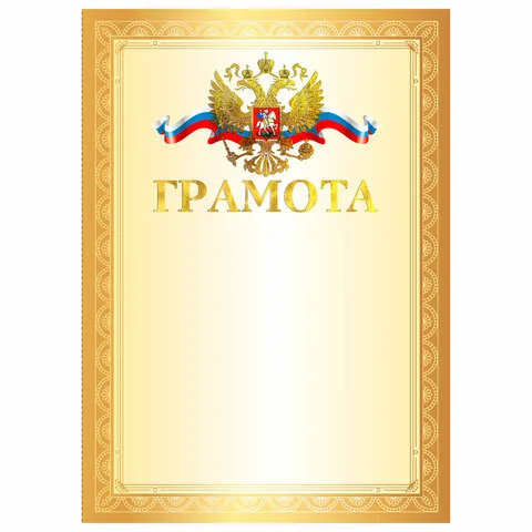 Грамота А4, мелованный картон, конгрев, тиснение фольгой, золотая рамка, BRAUBERG, 117531