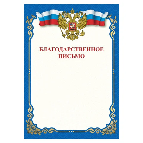 Грамота 'Благодарственное письмо', A4, мелованная бумага 115 г/м2, для лазерных принтеров, синяя, ST
