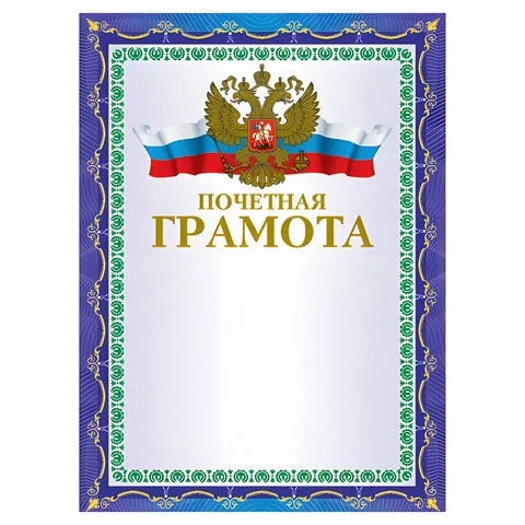 Грамота Brauberg А4, Почетная, герб с триколором, 20шт
