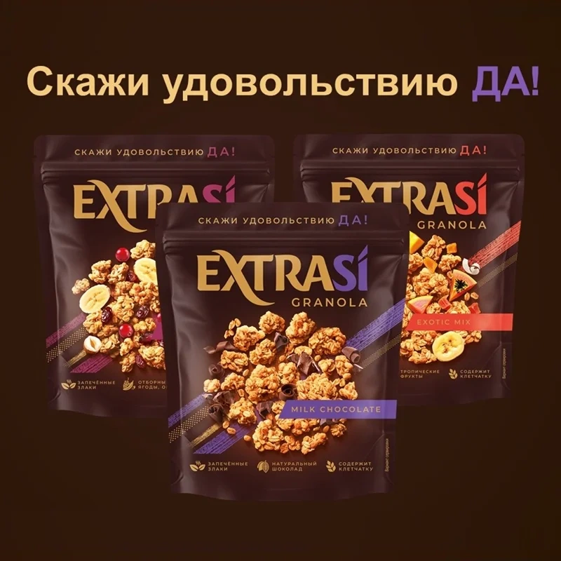 Гранола EXTRASI – это неповторимое сочетание вкуса и премиальных ингредиентов, которые приносят невероятное наслаждение. Восхитительный микс из овсяных хлопьев, хрустящего воздушного риса, кусочков молочного шоколада подарят моменты истинного удовольствия. Поможет пополнить запасы сил и энергии и внесет приятное разнообразие в привычное меню. Прекрасно подойдут для вкусного и быстрого завтрака или неповторимого перекуса в течение дня. Содержит клетчатку. Удобный замок зип-лок надолго сохранит свежесть мюсли. Гранола EXTRASI – это не просто завтрак, а моменты наслаждения каждое утро. Скажи удовольствию ДА.