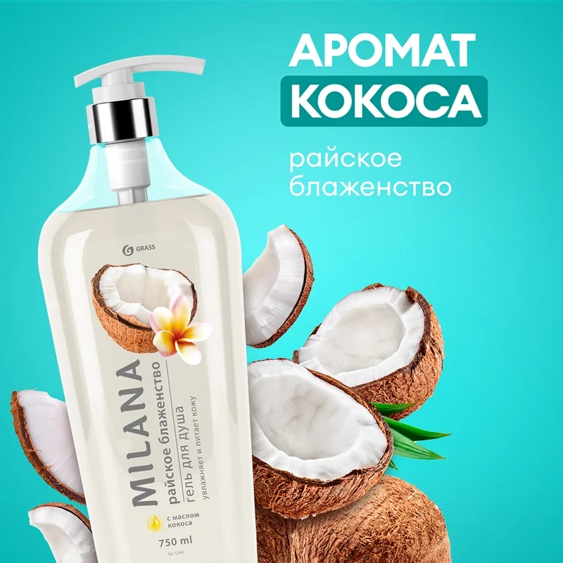 Гель для душа Grass Milana Райское блаженство, 750мл, с маслом кокоса