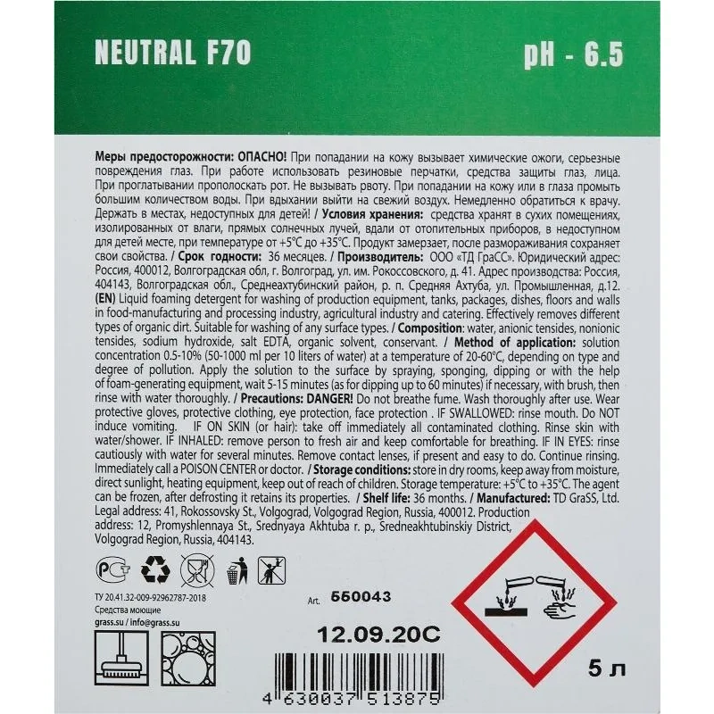 Чистящее средство Grass Neutral F70 5л, пенное, 550043