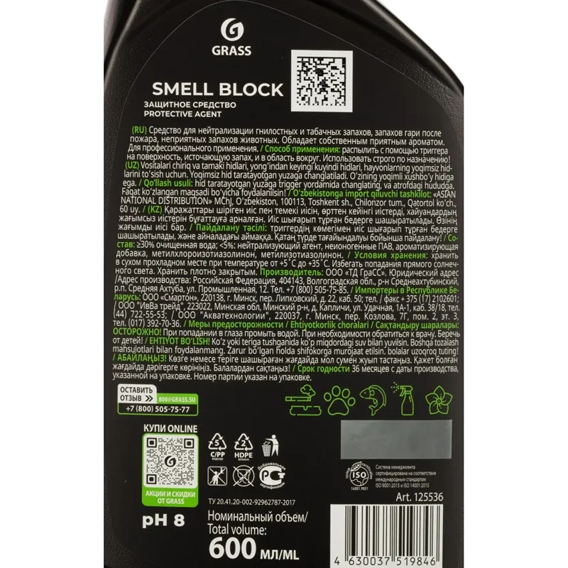 Нейтрализатор запаха Grass Block Professional 600 мл