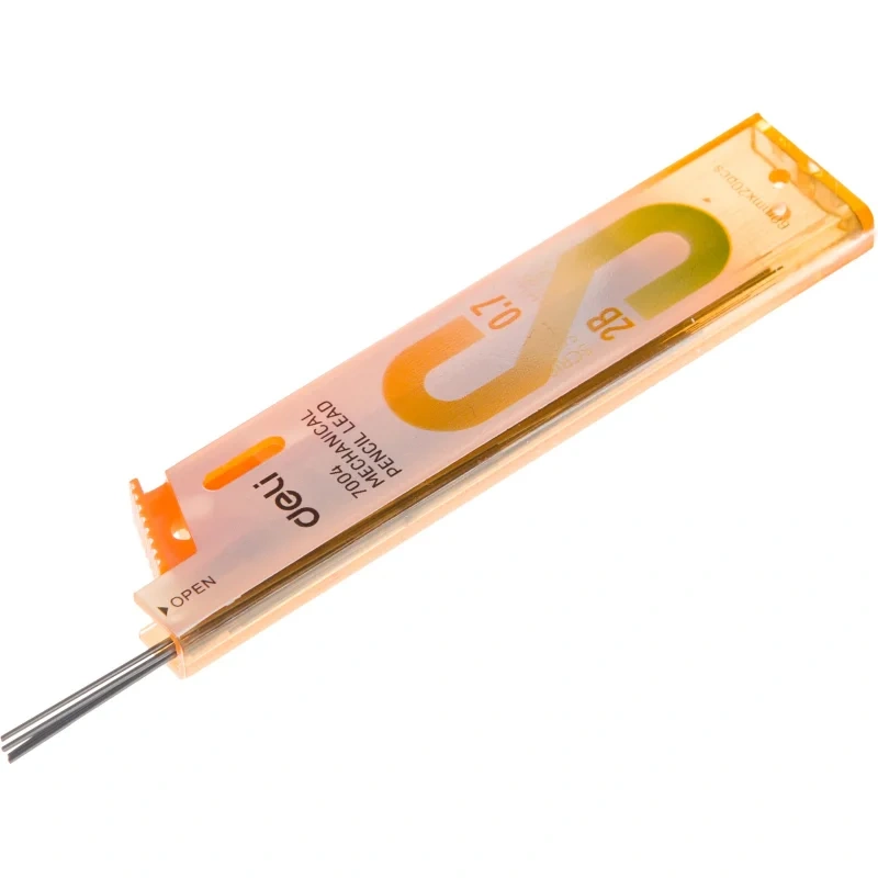 Сменный стержень микрографический Deli Scribe используется в механических карандашах. Грифели подходят для письма, точного рисования и черчения. Одной из главных характеристик является возможность рисовать тонкой линией. Штрихи мягко ложатся на бумагу. В одном удобном пластиковом футляре 20 грифелей толщиной 0,7 мм. Длина 1 стержня 60 мм. Твердость каждого — 2В.