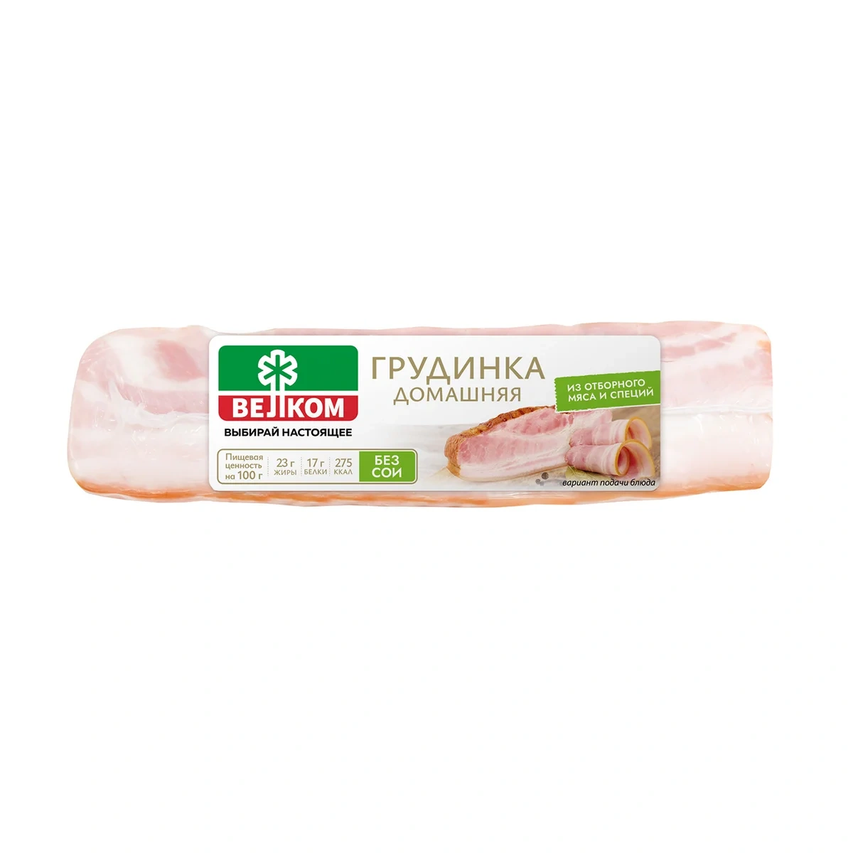 Грудинка свиная Велком Домашняя копчено-вареная кусок, 300г