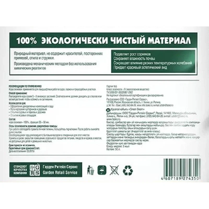 Применяется для мульчирования верхнего слоя почвы и для украшения всех видов комнатных растений и цветущих как дома, так и в офисе. Входящая в состав сосновая кора не содержит красителей, химических примесей, опила и стружки. Благодаря своим природным свойствам оптимизирует влаго- и воздухообмен, что препятствует закисанию грунта; уменьшает испарение влаги с поверхности почвы; помогает растениям переносить периоды вынужденной засухи. Упаковка: пакет. Страна производства: Россия. Объём: 2.5 литра. Вес: 0.43 кг.