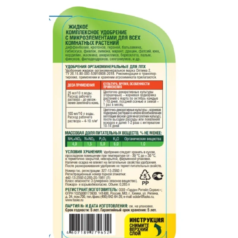 Удобрение Цветочное счастье Декоративно -лиственные 285мл